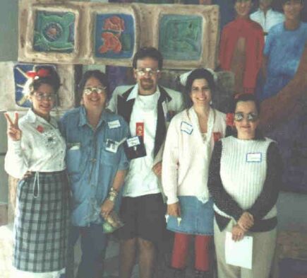 Left to Right: Back- Dan (Krusty the Clown) Kelly & Ronnie (Blinky) Renyolds Center- Cynthia (Cookie) Cook & Vicki (Coco) Schroeder Front- Barbara (Bip) Dupré & Nancy (Wavy Gravey) López
