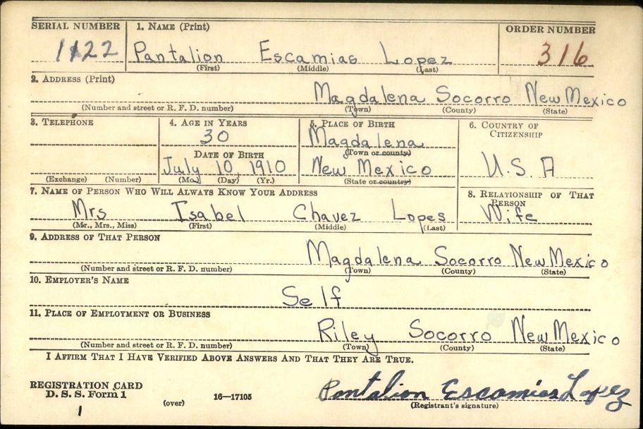 [Source: The National Archives in St. Louis, Missouri; St. Louis, Missouri; WWII Draft Registration Cards for New Mexico, 10/16/1940 - 03/31/1947; Record Group: Records of the Selective Service System, 147; Box: 70]